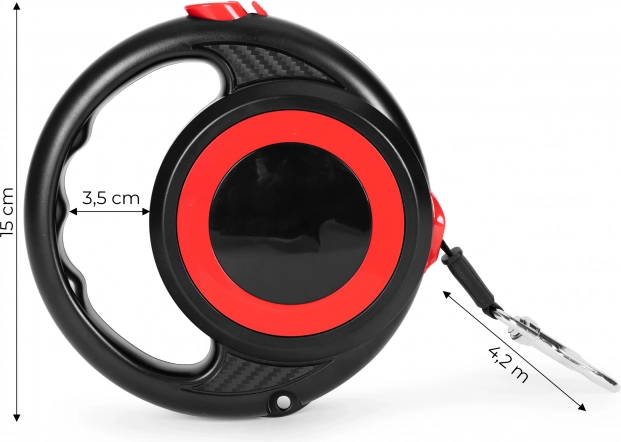 Praktičen samonavijalni povodec dolžine 4,2 m za pse in mačke zagotavlja udobje na sprehodih in hkrati popoln nadzor nad vašim ljubljenčkom. Opremljen je z zanesljivim aretacijskim varovalom, ergonomskim ročajem in vrtljivo jekleno karabino, ki preprečuje zvijanje povodca. Vzdržljiva izvedba znamke PETSI.
