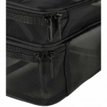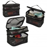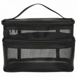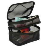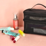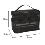 Potovalna kozmetična torbica je nujna spremljevalka vsakega potovanja. Dvonivojska zasnova omogoča urejen pregled in shranjevanje kozmetičnih pripomočkov. Zapiranje z dvosmerno zadrgo zagotavlja varnost in udobje pri uporabi. Torbica je izdelana iz zračnega materiala, ki omogoča, da zlahka najdete shranjene izdelke.