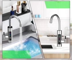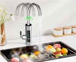 Električni pretočni grelnik vode z LCD je idealna rešitev za takojšnje segrevanje vode neposredno iz pipe. S sodobnim dizajnom doda eleganco in stil vaši kuhinji.