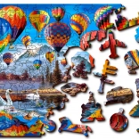 Elegant izziv in zabava za ljubitelje sestavljank. Lesena sestavljanka s motivom toplozračnih balonov ponuja edinstveno izkušnjo zahvaljujoč 61 posebno oblikovanim koščkom v oblikah živali, zgradb in predmetov. Nekatere lahko postavite kot majhne figurice, kar sestavljanko spremeni v odlično darilo in stilno dekoracijo.