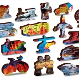 61 posebnih koščkov v oblikah živali, zgradb in predmetov. Precizen laser poskrbi za gladke robove in lepo poudarjene detajle.