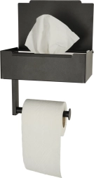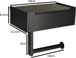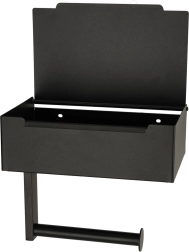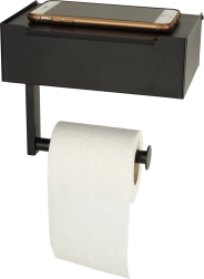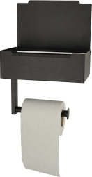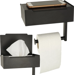 Črno držalo za toaletni papir s prostorom za shranjevanje je praktični dodatek za vašo kopalnico. V prostoru za shranjevanje lahko hranite vlažilne robčke ali druge potrebščine. Thanks to its minimalist design, the holder easily integrates into your bathroom interior.