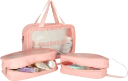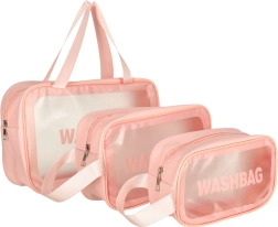Potovalni kozmetični torbici prozorni, vodoodporni, set 3 kosov roza