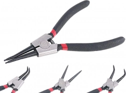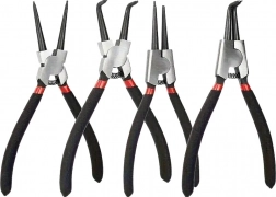 Praktičen set za delo z varnostnimi obročki Seger vsebuje 4 kose klešč – 2× ravne in 2× ukrivljene konice za notranje in zunanje obročke. Trpežna kovinska izvedba z ergonomskimi, protidrsnimi ročaji zagotavlja natančno montažo in demontažo v avtoservisu in delavnici. Idealno za mehanike in domače mojstre, ki zahtevajo zanesljivost, natančnost in udobno uporabo.