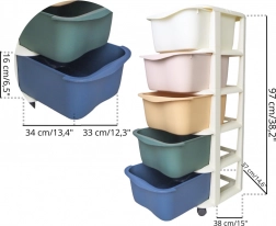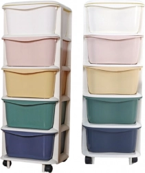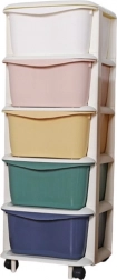 PLASTIČNA POLICA NA KOLEŠČKIH S PISANIMI PREDALI