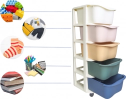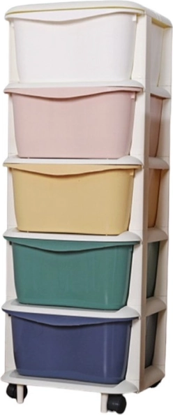 Ohranjanje reda v stanovanju je lahko zahtevno, vendar brez skrbi! Naš plastičen regal na koleščkih je idealna rešitev za vas. Zahvaljujoč pisanim predalom in gladki plastični površini, se polica enostavno čisti in popolnoma shrani vaše stvari, dodatke in oblačila. Nežna barva vam omogoča, da regal uskladite s katerоkoli sobo.