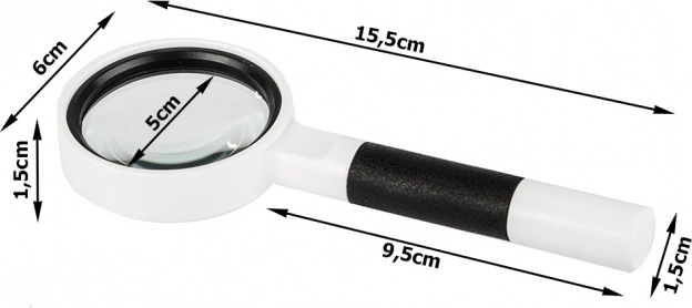 Praktična ročna lupa s premerom leče 50 mm in 7× povečavo za branje, delo z nakitom, znamkami ali kovanci. Lahka zasnova, steklena leča za čist prikaz in proti zdrsu odporen ročaj za udoben oprijem pri vsakodnevni uporabi.