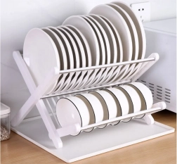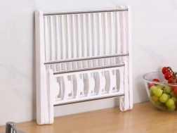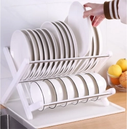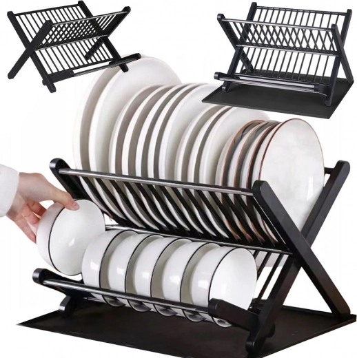 Eleganten in prostoren zložljivi dvonadstropni odcejalnik za posodo je zasnovan za učinkovito sušenje in prihranek prostora v vaši kuhinji.