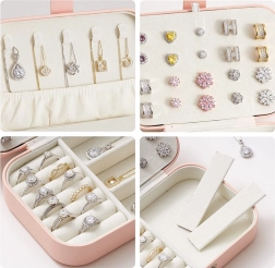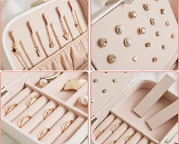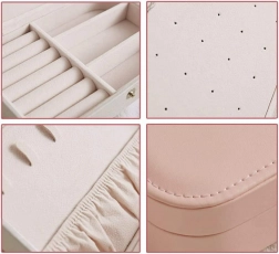 Elegantna velika šatulja za nakit je idealna za organizacijo vašega nakita in drobne kozmetike. Zaradi prostornosti in funkcionalnega dizajna ponuja številne možnosti, kako učinkovito shraniti prstane, uhane in ogrlice.