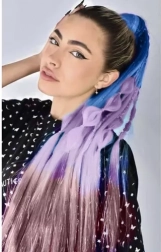 Popestrite svojo pričesko z lahkimi sintetičnimi ombré kitami v odtenkih modra–vijolična–rožnata za izrazit, a preprosto zamenljiv stil. Bleščeči prameni dodajo domišljijo in sijaj brez trajnih sprememb – kito preprosto namestite in kadarkoli odstranite. Vlaknasti material je mehak, trpežen in ne obremenjuje las ali lasišča.