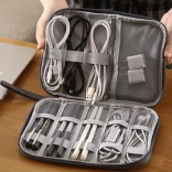 Brez več zavozlanih kablov in kaotičnega dna nahrbtnika. Ta priročen organizator združuje lahek in trpežen poliester s praktično razporeditvijo, zato boste USB-kable, polnilnike, slušalke in redukcije shranili varno in pregledno. Kompaktne mere 24 × 17 × 2,5 cm se odlično prilegajo torbi ali ročni prtljagi.
