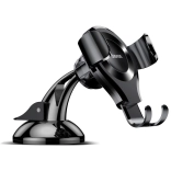 Gravitacijski mehanizem poskrbi za takojšen oprijem – vstavite telefon in stranske čeljusti se same stisnejo. Trpežna konstrukcija iz PC in kovinskih elementov s silikonskim oblazinjenjem ščiti napravo pred praskami in jo trdno drži tudi na neravninah.
