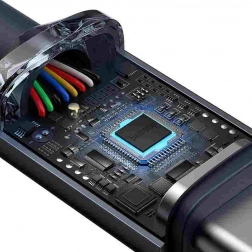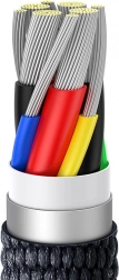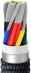 Natančna izdelava s kovinskimi elementi konektorjev in posebno razbremenitvijo napetosti ščiti najbolj obremenjen del kabla. Večžilno jedro zagotavlja stabilen tok tudi pri visoki moči do 100 W ter zanesljiv prenos podatkov s hitrostjo 480 Mb/s.