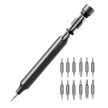 Odkrijte natančen izvijač HOTO, ki je idealen za vse vaše potrebe pri popravilih in mojstrskih opravilih. Izdelan je iz trpežne aluminijaste zlitine in ponuja večje udobje pri uporabi celo dolgoročno. Komplet vsebuje 12 obojestranskih nastavkov, kar skupno predstavlja 24 različnih vrst, shranjenih v magnetnem boksu.