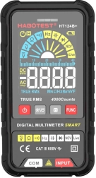 HABOTEST HT124B+ združuje širok nabor funkcij in varnostne standarde EN61010-1, CAT III 600 V. Zaradi kompaktnosti 130 × 70 × 23 mm in mase 125 g odlično leži v roki in se zlahka prilega torbi. Mehko, na udarce odporno ohišje povečuje vzdržljivost in izolacijo, medtem ko velik zaslon z osvetlitvijo ozadja zagotavlja odlično berljivost vrednosti.