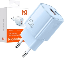 Kompakten GaN polnilec z močjo do 33 W ponuja vrata USB‑C in USB‑A za sočasno polnjenje dveh naprav. Podpira hitro polnjenje, ima široko združljivost (telefoni, tablice, prenosniki, Nintendo Switch) ter varnostne funkcije proti prenapetosti, pregrevanju in kratkemu stiku. Lahek in primeren za potovanja – tehta le 51 g.