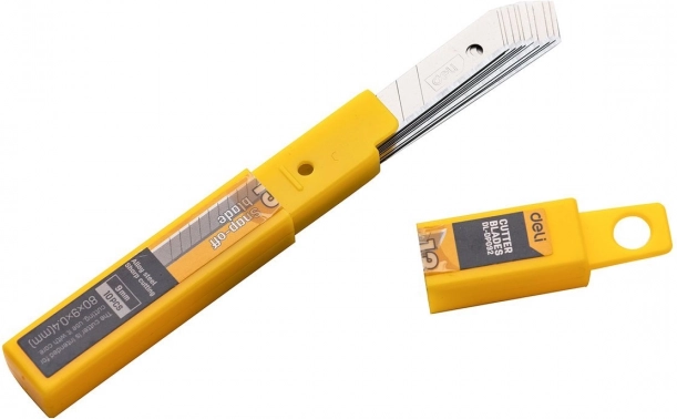 Univerzalni nož Deli Tools z 9mm rezilom je idealen za natančno rezanje in praktično uporaben v različnih situacijah. Dobavljen z 10 nadomestnimi rezili za dolgotrajno uporabo.