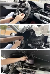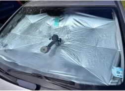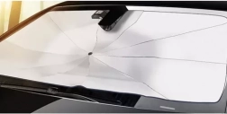 Senčnik se raztegne kot dežnik in se enostavno pritrdi na notranjo stran vetrobranskega stekla. Poseben srebrni premaz odbija sončne žarke, kar ohranja notranjost avtomobila hladno.