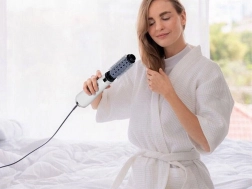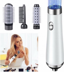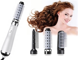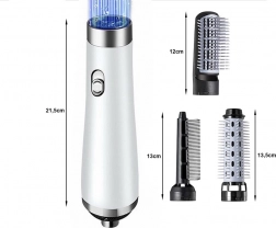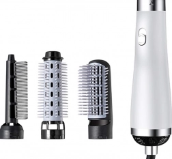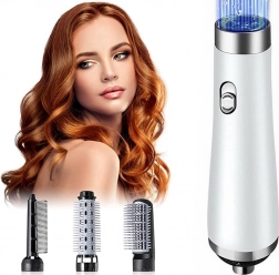 V kompletu so trije zamenljivi nastavki: okrogla krtača, ravna krtača in glavnik, ki zagotavljajo univerzalne in prilagodljive možnosti oblikovanja. Vrtljiv kabel zagotavlja svobodo in udobje gibanja med uporabo.