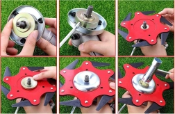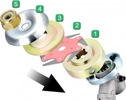 Komplet zagotavlja stabilno pritrditev nožev, kolutov in krtač, zato kosilnica deluje gladko in brez vibracij.
