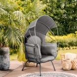 Stabilna in trdna jeklena konstrukcija zagotavlja varnost in udobje. Velika zložljiva strešica nudi prijetno senco v vročih dneh in ščiti pred sunki vetra. Branje, sončenje ali sprostitev na prostem ne bodo nikoli več enaki kot prej.