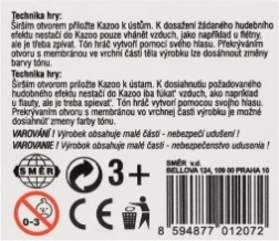Kazoo zazveni že ob navadnem brenčanju. Idealno za hitro zabavo in prve glasbene poskuse otrok.