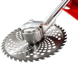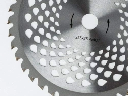 in učinkovito košnjo tudi v najzahtevnejših pogojih.- Štirideset ostrih vilicastih zarez omogoča čist in natančen rez, kar je ključnega pomena pri delu z gosto travo, grmičevjem in tankimi vejami.