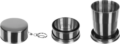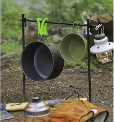 Set vključuje jedilni pribor, zložljive kozarčke in karabine – idealno za ture, kamp in piknike.