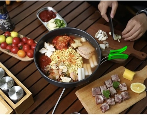 Ta univerzalen 18-delni set kamping posode združuje nizko težo, vzdržljive materiale in odlično zložljivost. Zahvaljujoč neprijemljivemu sloju boste hrano pripravili enostavno in brez prismod, zložljivi ročaji pa zagotavljajo varen oprijem in preprosto prenašanje.