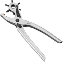 Robusten luknjač za usnje znamke Deli Tools z vrtljivo glavo in 6 velikostmi odprtin (2–4,5 mm) za natančno prebijanje pasov, trakov ali tkanin. Iz trpežnega CR-V in hladno valjanega jekla s kromirano površino ter samosporno ključavnico za varno uporabo.
