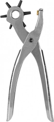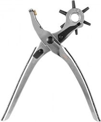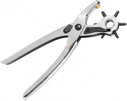 Univerzalni luknjač z vrtljivim vencem omogoča hitro izbiro želenega premera odprtine 2 / 2,5 / 3 / 3,5 / 4 / 4,5 mm. Idealno za prilagoditve usnjenih pasov, torb, ovratnic, pa tudi tekstila ali tanjših materialov. Ergonomska zasnova zagotavlja udobno in natančno prebijanje brez cefranja robov.