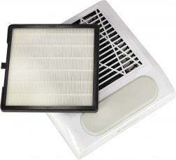 Ta brezprašni lovilec prahu ima kasetni sistem praznjenja, ki zagotavlja, da kontaminacija ne prodre v okolico. Je kompakten (24 × 23 × 7,5 cm) in praktičen, zato mu boste zlahka našli mesto na delovni mizi.
