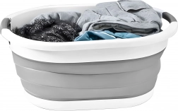 Košaro preprosto stisnete v ploščato obliko in shranite v omarico ali za pralni stroj. Idealna rešitev za majhne kopalnice in garsonjere.