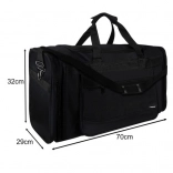 Organizacija je preprosta: glavna komora sprejme oblačila in opremo, sprednji žep na zadrgo je idealen za drobnarije in dokumente, dva velika stranska žepa omogočata hiter dostop do obutve ali dodatkov. Nastavljiv ramenski trak z blazinico razbremeni ramo tudi pri težjem tovoru.