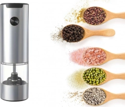 Ta električni mlinček za začimbe prinaša udobje in učinkovitost v vašo kuhinjo. Opremljen z zmogljivim in tihim motorjem, lahko hitro in učinkovito melje različne vrste začimb, od soli in popra do eksotičnih mešanic.