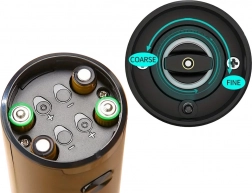 Mlinček je opremljen z tihem motorjem, ki hitro melje začimbe od soli in popra do eksotičnih mešanic.