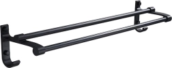 Eleganten dvojni nosilec za brisače je idealna izbira za moderne in klasične kopalnice. Dve vzporedni palici zagotavljata dovolj prostora za sušenje in organizacijo brisač, medtem ko stranski kavlji ponujajo dodatno mesto za dodatke. Trdna kovinska konstrukcija v črni izvedbi zagotavlja dolgo življenjsko dobo in enostavno vzdrževanje.