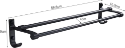 Zaradi širine 58,6 cm, višine 9 cm in globine 10,5 cm nosilec zlahka namestite nad radiator, ob prho ali ob kad. Dolžina krakov 24 cm zagotavlja udobno obešanje tudi večjih brisač.
