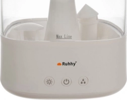 Vlažilnik zraka je enostaven za upravljanje zahvaljujoč sprednjim nazirnim tipkam na dotik, s katerimi lahko uravnavate količino sproščene pare in izberete želeni način osvetlitve. Primeren je tudi za aromaterapijo; z dodajanjem kapljic eteričnega olja ustvarite sproščujoč vonj.