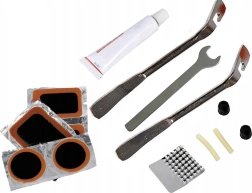 Vsebuje žlice za demontažo pnevmatik, ključ za kolesa in druga pomembna orodja, ki olajšajo popravila na poti.