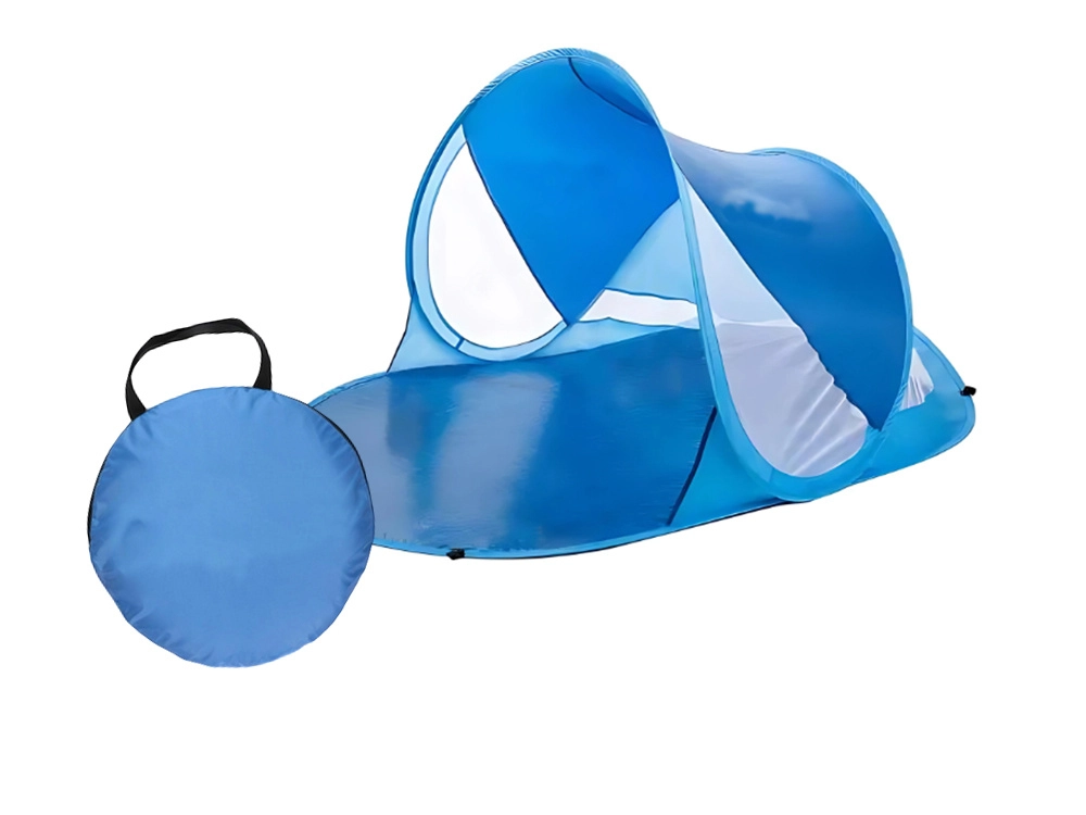 Šotor se sam postavi v nekaj sekundah. Dovolj je, da ga vzamete iz torbe, in pripravljen je za uporabo – idealno za hitre izlete k vodi ali na vrt.