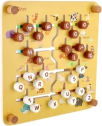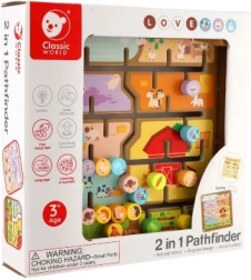 Obojestranski leseni labirint 2 v 1 znamke CLASSIC WORLD združuje igro in učenje: na eni strani kmetija z živalmi, na drugi strani abeceda z živalmi. Otroci vadijo fino motoriko, logično razmišljanje in zbranost, ko vodijo drsnike po labirintu na prava mesta. Kakovostna lesena izdelava, mera 30 × 30 cm, primerno od 3 let.