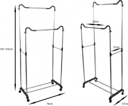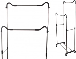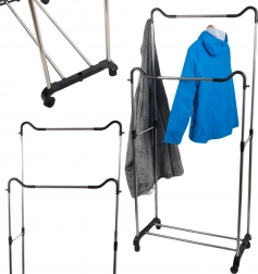 Praktičen oblačilni stojal za pregledno shranjevanje oblačil z dvojnim prostorom za obešanje, vgrajeno polico za čevlje in dodatke ter kolesci za enostavno premikanje. Ponuja stabilno in lahko konstrukcijo, hitro montažo in univerzalno uporabo v spalnici, garderobi ali predsobi. Višina 165 cm.