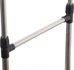 Kakovostne kovinske cevi in čvrsti plastični spoji zagotavljajo lahkost in dolgo življenjsko dobo. Stojalo je odporno in stabilno pri vsakodnevni uporabi.