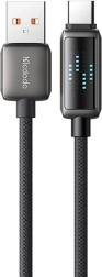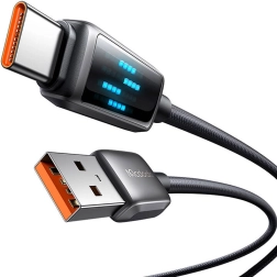 Dinamičen LED zaslon prikazuje trenutno hitrost polnjenja, kar vam omogoča popoln nadzor nad postopkom. Sodobna zasnova kabla poudarja njegov slog in funkcionalnost.