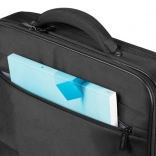 Integrirani pas omogoča namestitev torbe na teleskopski ročaj kovčka, zato so premiki na letališču ali v pisarni udobni in varni.