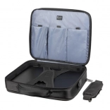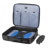Vaša naprava je zaščitena z večnivojskim sistemom: Air Cell System za absorpcijo udarcev, Anti‑Shock System z dvojno ojačanim okvirjem ter X‑Holding System z elastičnimi trakovi, ki fiksirajo prenosnik proti tresljajem. Ne manjka niti trolley pas za preprosto namestitev na izvlečni ročaj kovčka.
