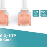 Vsak kabel ima ulito prožno uvodnico z razbremenilnim prijemnim obročem in zaščitenim jezičkom, ki preprečuje zatikanje in lom. Rdeča barva konektorjev zagotavlja enostavno identifikacijo kategorije 6.