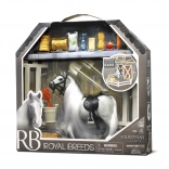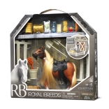 Ta set vsebuje Konj Royal Breeds velikosti 17 cm z interaktivnimi elementi, ki pritegnejo vsakogar otroka. Odpiralna zadnja stran embalaže širi možnosti igre in se preoblikuje v hleve: