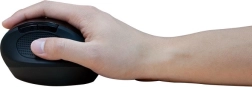Ergonomska oblika miške se prilagaja naravnemu položaju roke in gibom zapestja, kar zmanjšuje utrujenost pri dolgotrajni uporabi.